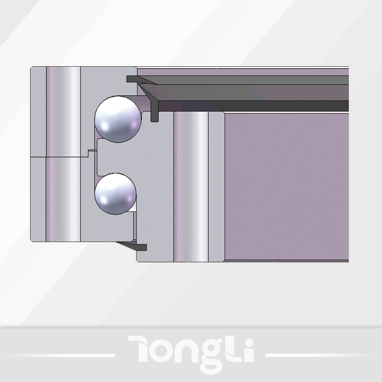 Double-row different diameters ball slewing ring feature three seat rings. Depending on the load conditions, two rows of steel balls with different diameters are distributed across the upper and lower rings. Both the upper and lower curved raceways have a 90-degree contact angle, enabling them to withstand significant axial forces and overturning moments. When the radial force exceeds 0.1 times the axial force, the raceway requires special design. A drawback is that each row of steel balls bears the load independently, resulting in low material utilization and high manufacturing costs.